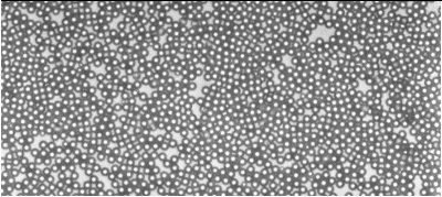 Polystyrene particles were synthesised using dispersion polymerisation. The particles synthesised had an average diameter of 6.4 µm. Due to the synthesis technique, the particles have an hydroxypropyl cellulose (HPC) coating on their surface. The coating density is around 1 chain in 7 nm2.